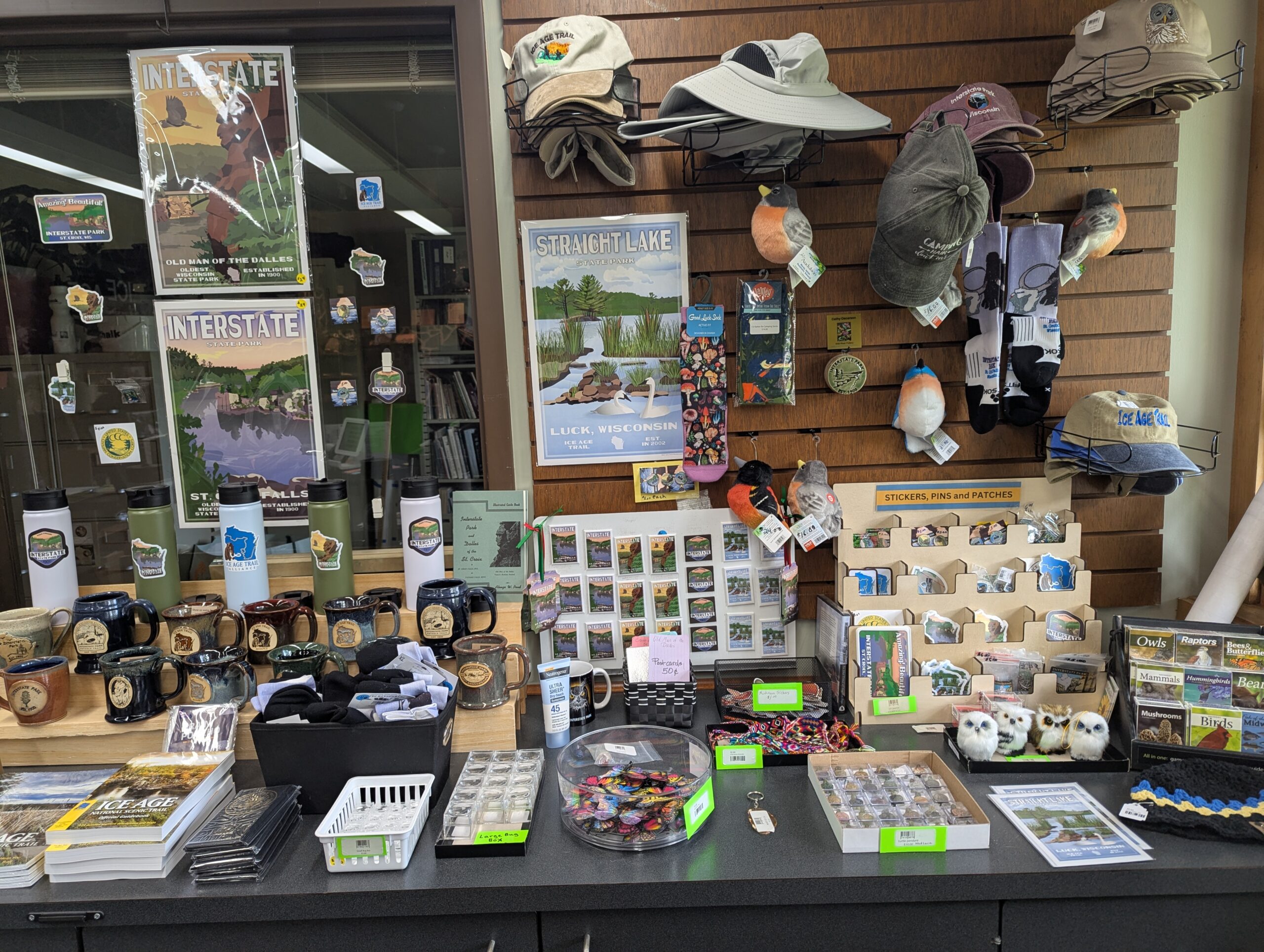 Located in the Ice Age Interpretive Center, Glacier’s Gifts offers nature related books, apparel, posters, kids’ items, and more. We also have special 125th Anniversary items as we celebrate Wisconsin’s oldest state park in 2025!
