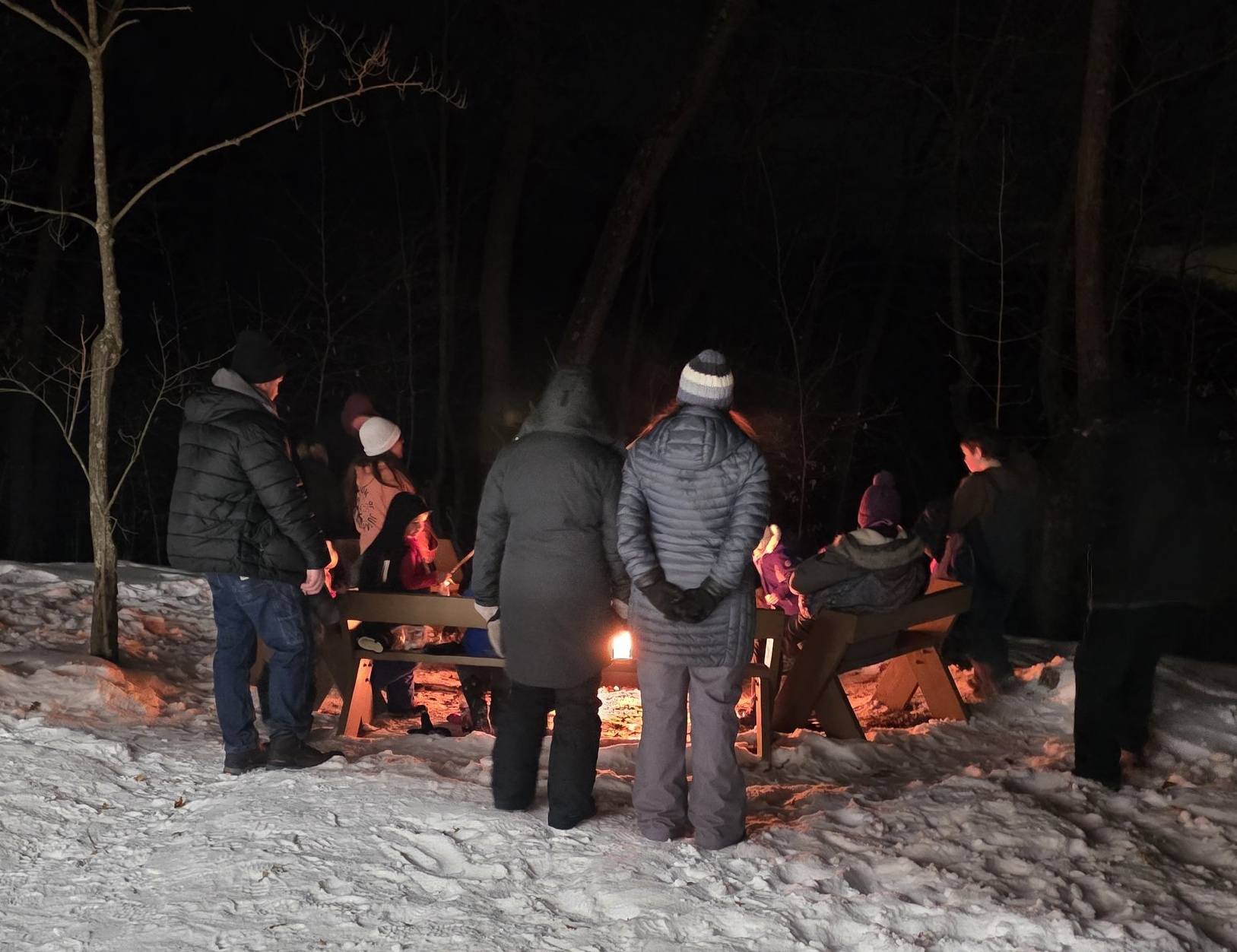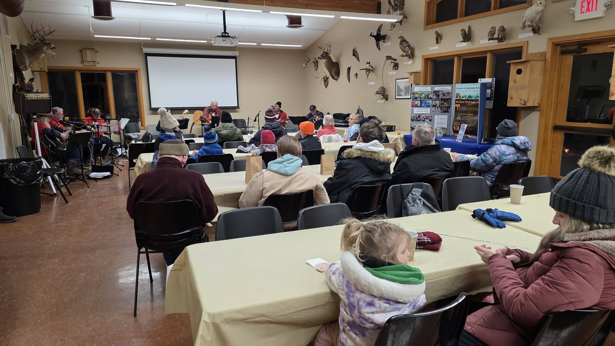 We would like to thank the many volunteers that came out to help make the night a success! This event would not be possible without the help of so many people. Volunteers prepared the candle luminaries, and helped place and light hundreds of candles on four trails. Volunteers also helped with running the kitchen with warm chili, sweet treats and hot beverages. Entertainment inside the Ice Age Center was provided by the Log Jammers. And of course a very special thank you to our community partners that provided door prizes for park guests.